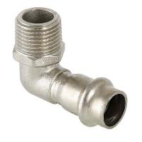 Угольник 90° с нар.р нерж. сталь 28х3/4" VTi.953.I.002805 - пресс-угольник из нержавеющей стали с наружной резьбой обеспечивает соединение тонкостенной стальной трубы с резьбовым элементом монтируемой системы под углом 90°. Область применения – трубопроводы водоснабжения, отопления, иные инженерные и технологические установки с рабочей температурой до 120 °С и давлением до 16 бар.Пресс-соединение – бесштуцерное. Обжатие производится с помощью пресс-инструмента V-профиля. Шестигранный – под гаечный ключ – участок корпуса облегчает монтаж резьбового соединения.